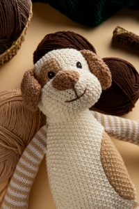 Заполняем голову и тело, затем соединяем детали по задним полупетлям.